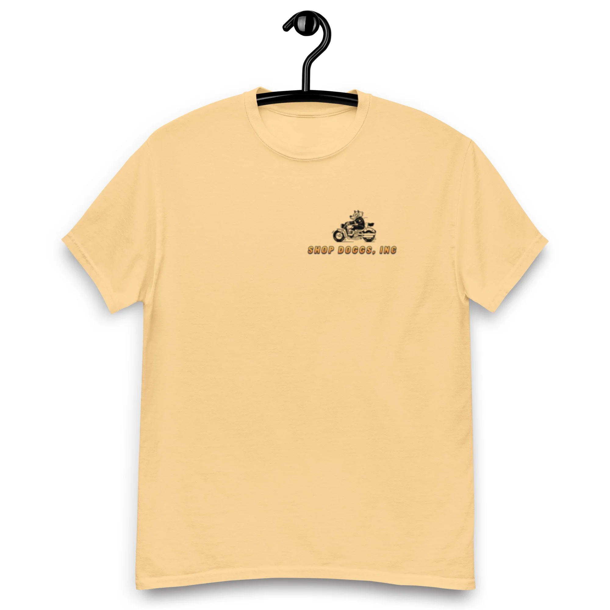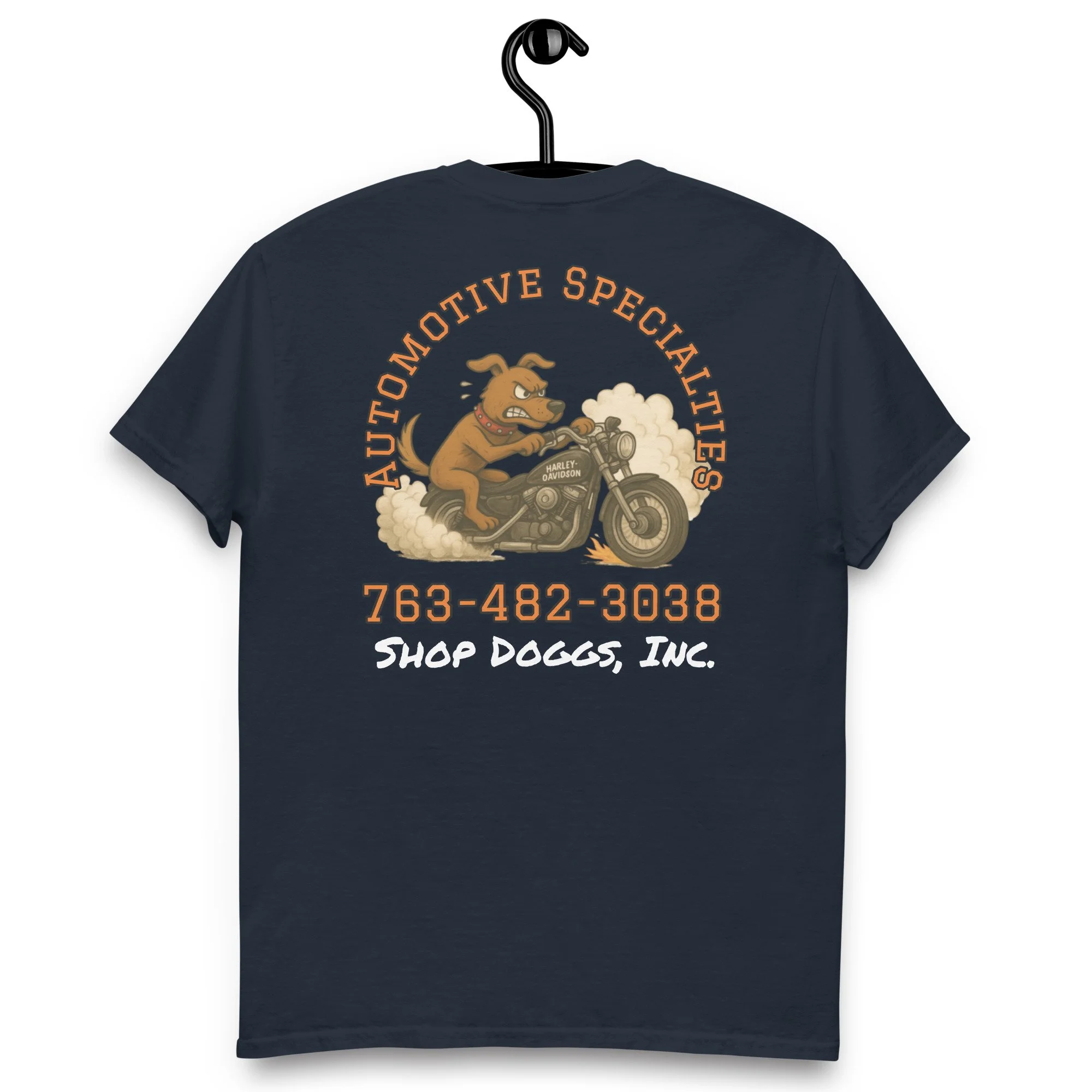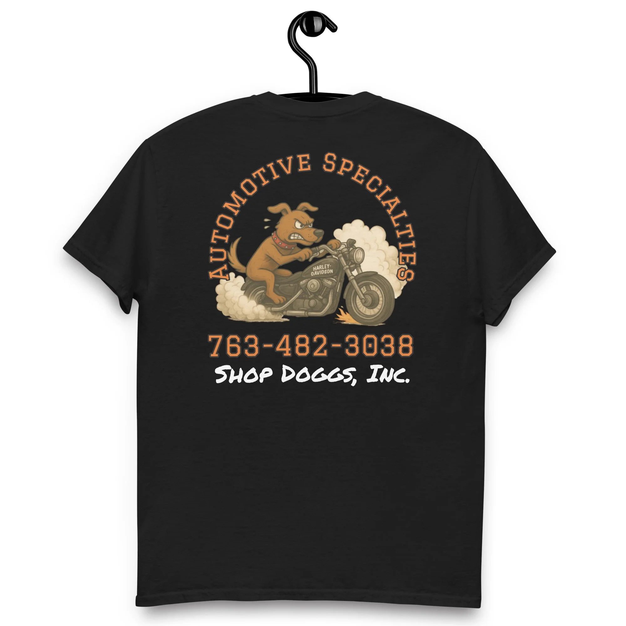 Unleash your inner rebel with the “Dogg on a HAWG” tee. Featuring our hard-charging Shop Dogg ripping a burnout on a Harley-Davidson, this design is all attitude and asphalt. Perfect for bikers, gearheads, and anyone who loves the smell of burnt rubber, this shirt brings old-school grit with cartoon-style bite. Ride fast, look mean, and let ‘em know you’re powered by pure Dawg energy.