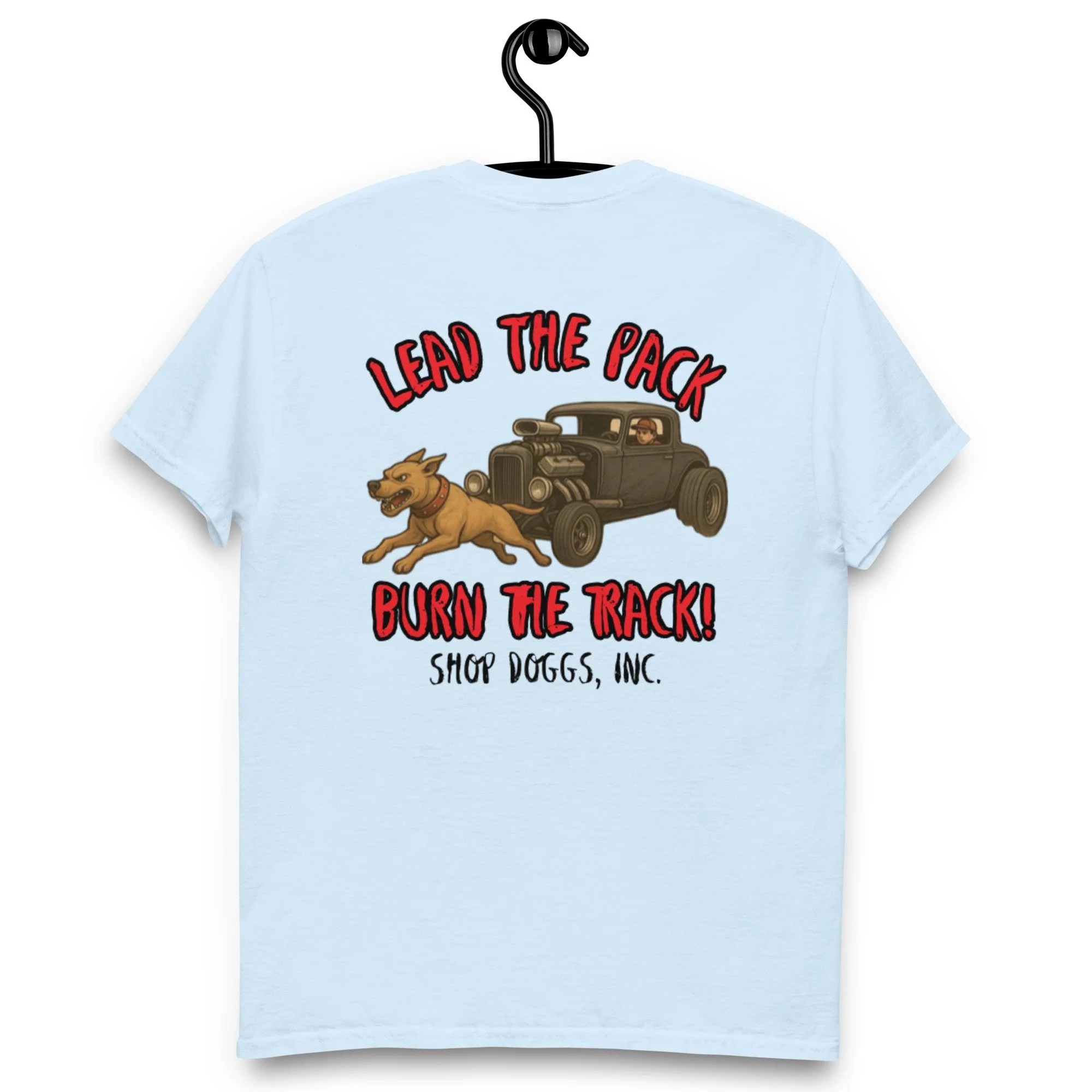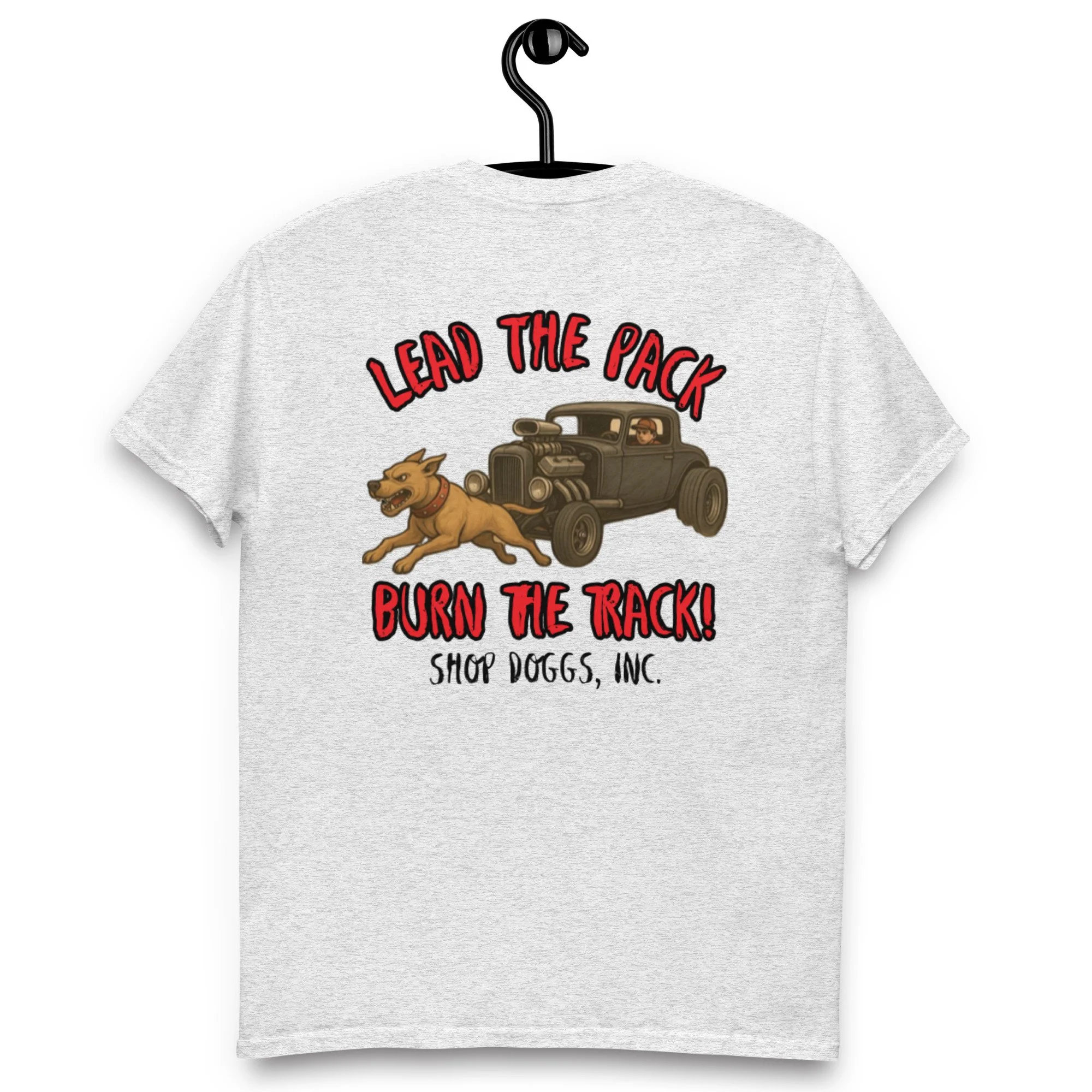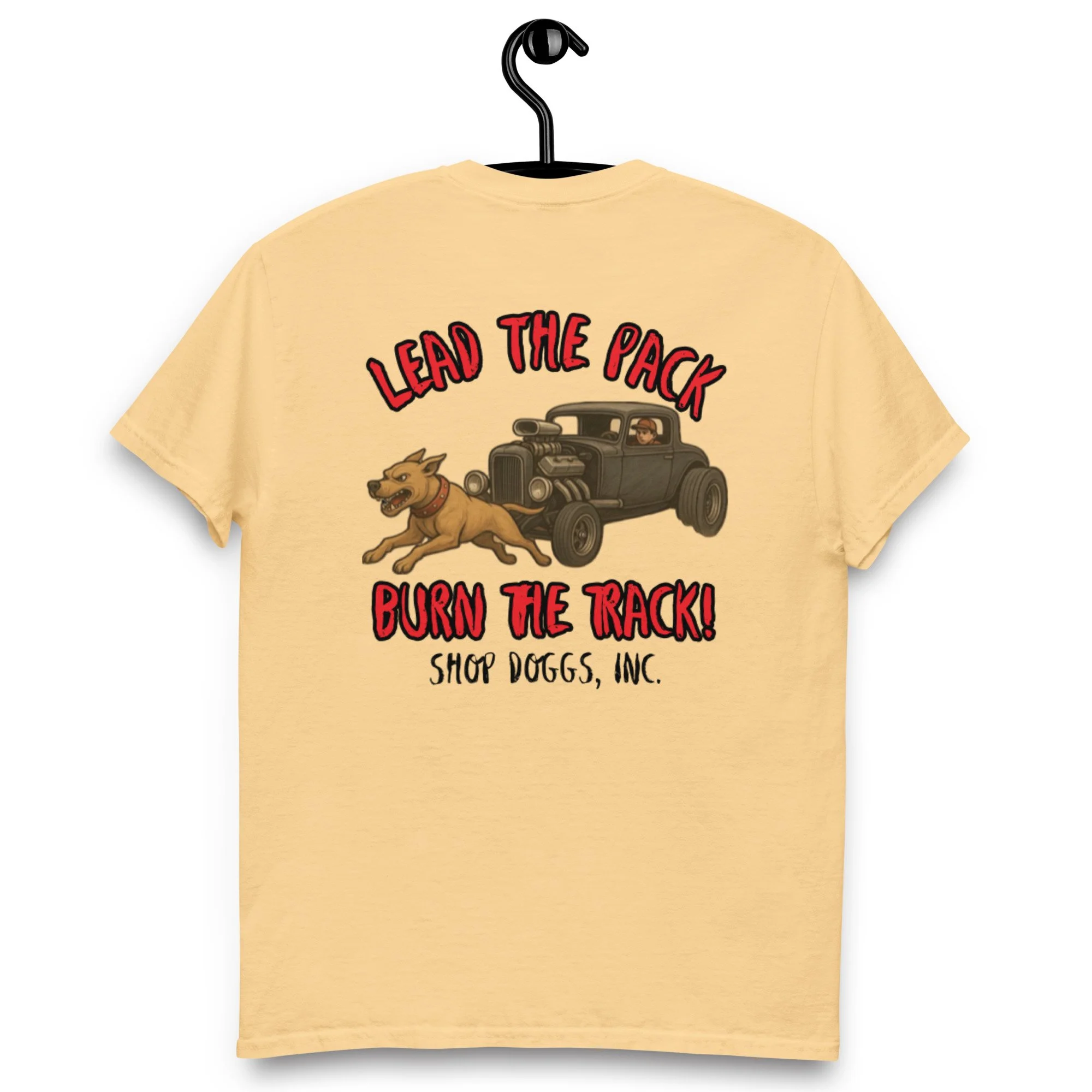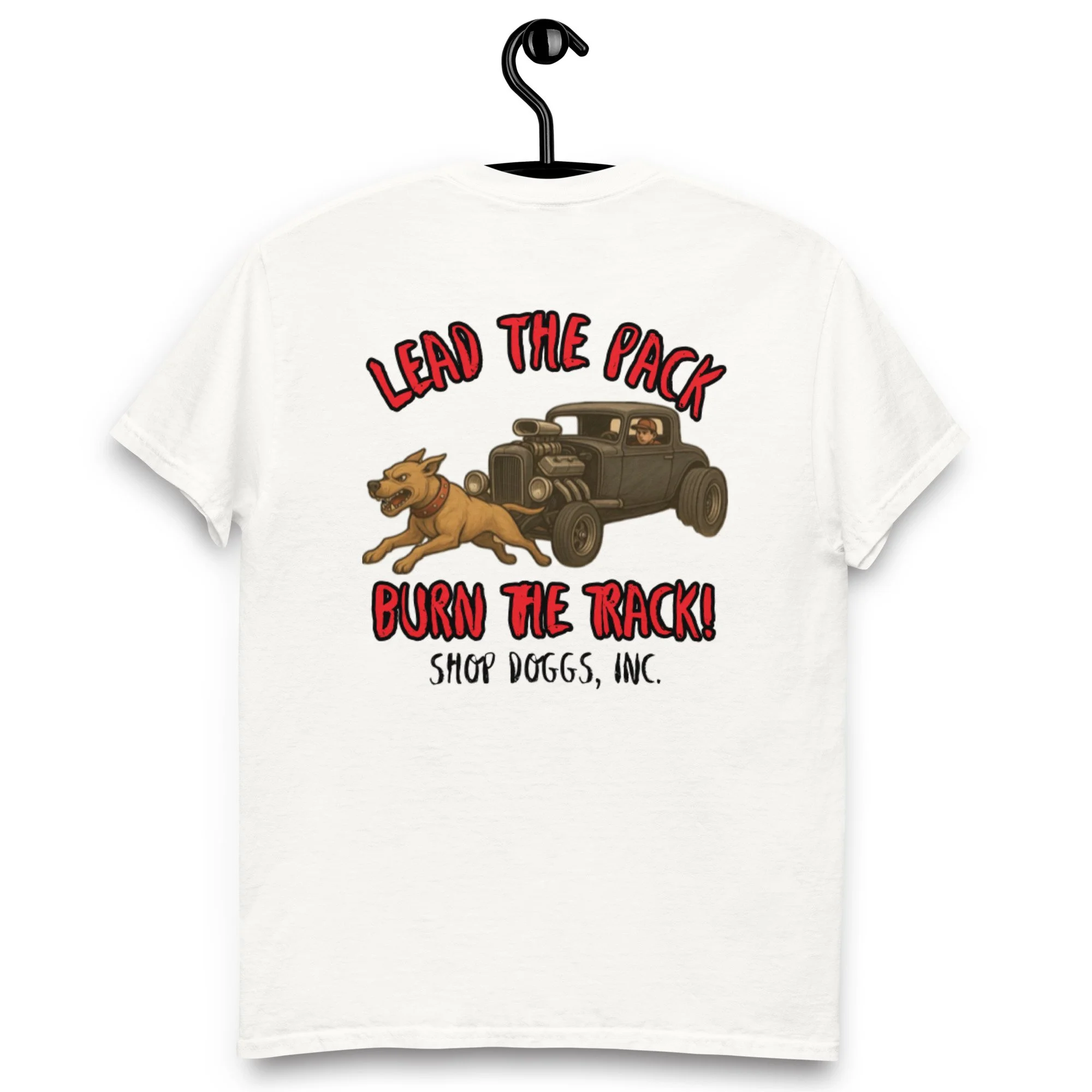 Speed, style, and a snarl—Lead the Pack is for the ones who live life in the fast lane. Our Dawg is ahead the wheel of a hot rod, tearing up the pavement and leaving everyone else in the dust. This shirt is all about horsepower, competition, and being out front where you belong. Bold, loud, and unapologetically badass—exactly how Shop Doggs run the race.